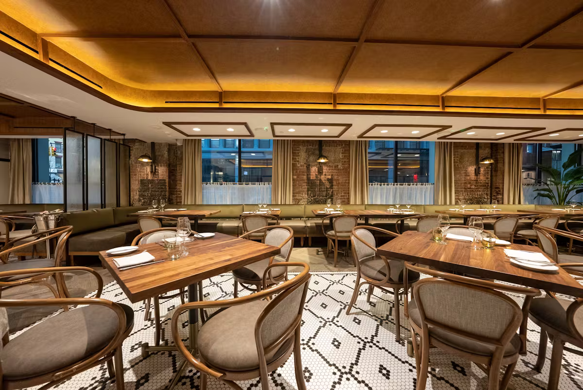 Michelin-starred Francie, is in the heart of Williamsburg, Brooklyn. Located in a limestone-clad former bank building, Francie has the convivial feel of a neighborhood brasserie. Francie serves an approachable menu inspired by European flavors and designed for flexibility: snacks, shellfish, and first courses, followed by handmade pastas and main courses. Inspired choices include The Market Salad, Lobster Ravioli, Crown Roast of Duck, and Côte de Boeuf for Two. Save room for the Cheese Cart. The timeless space, designed by architect Glen Coben, is brought together by the open kitchen, a focal point that beckons both neighbors and guests to the warmth of the dining room.