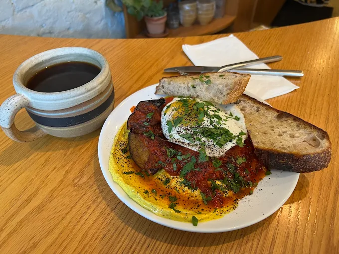 Golda is a loved 28 seat all-day restaurant in Bed-Stuy Brooklyn, known for its warm neighborhood vibes, an excellent locally roasted coffee program, creative pastries, and a deliciously confident Cali-meets-Middle Eastern menu.